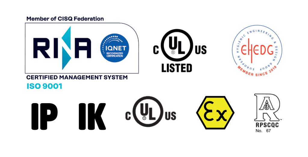 • The (Nema 4x, 4, 1, 12), the mandatory certification for export them in the USA and Canada;